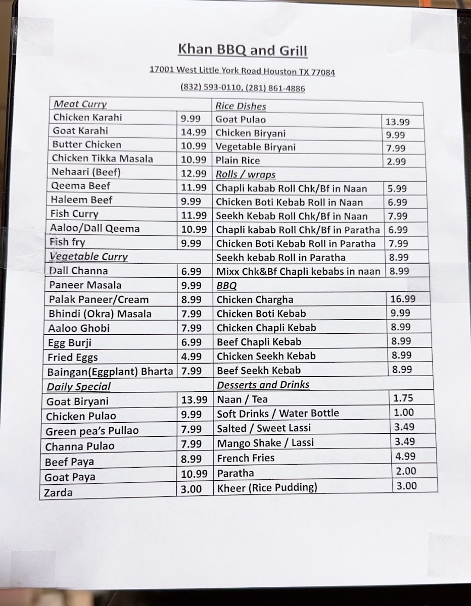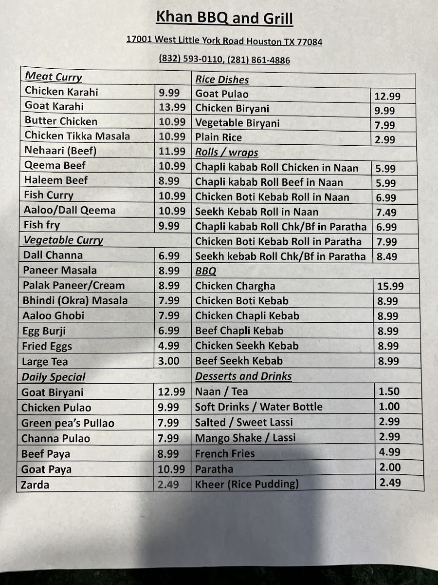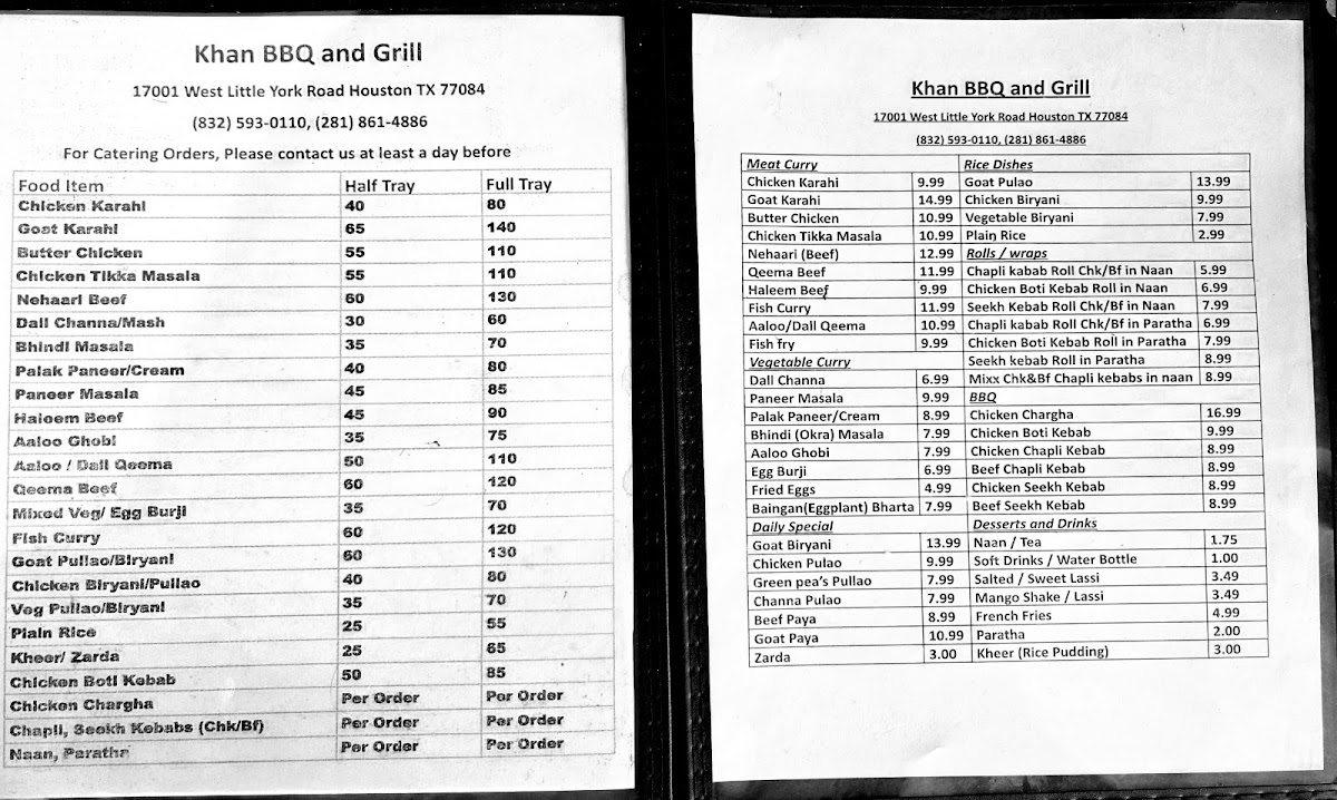 Khan BBQ & Grill Menu
